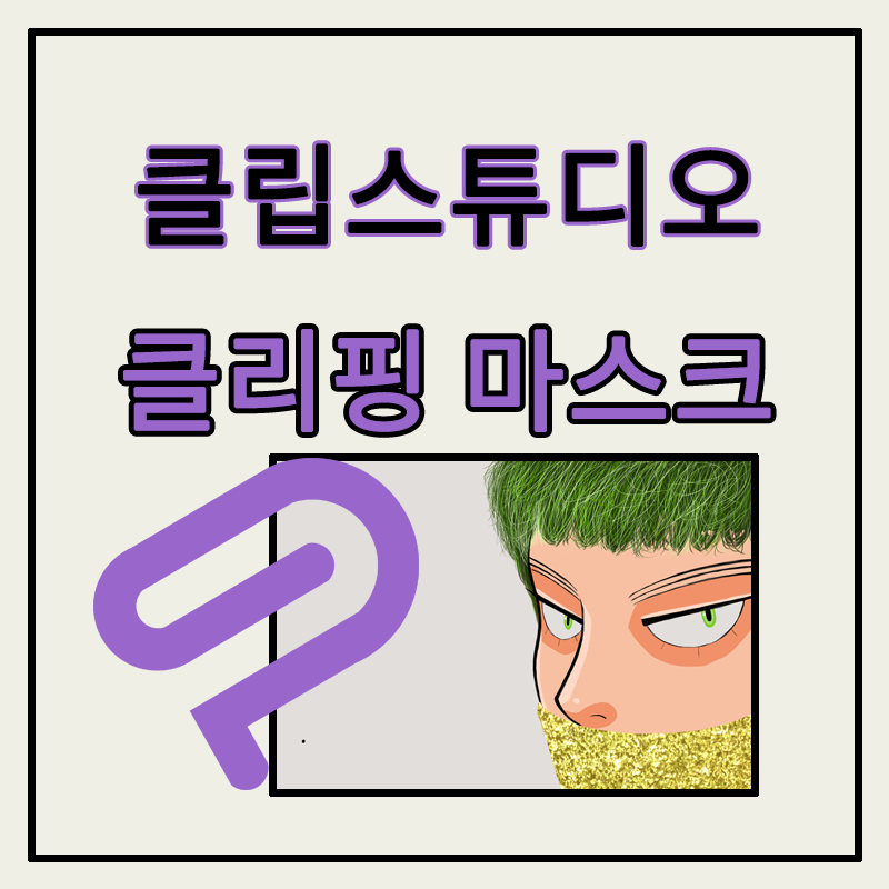 아래 그림의 캐릭터가 검은색 마스크를 착용하고 있습니다. 클리핑 마스크 기능과 다운로드해 놓은 소재를 사용해서 마스크의 색과 질감을 바꿔 보겠습니다. 소재 다운로드 방법은