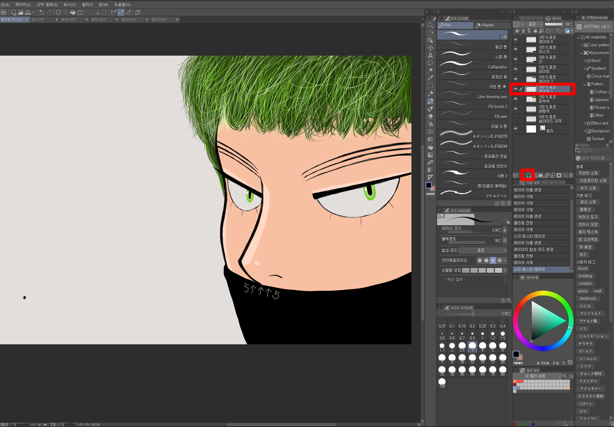 클립 스튜디오 : 클리핑 마스크로 그림자 넣고, 질감 바꾸기.