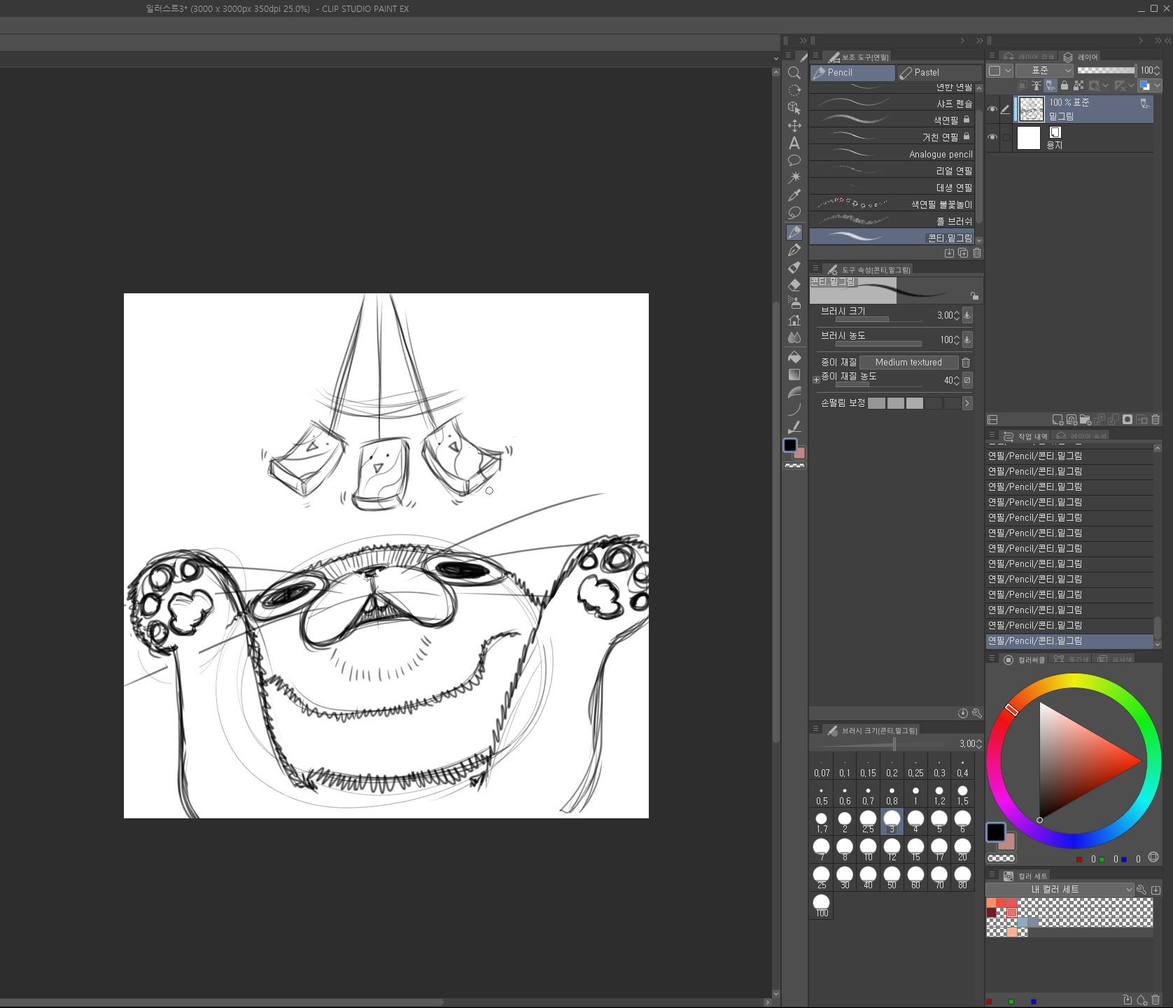 그리고 간단한 러프 스케치를 합니다. (연필 툴, 사이즈 3으로 작업했습니다.^^)