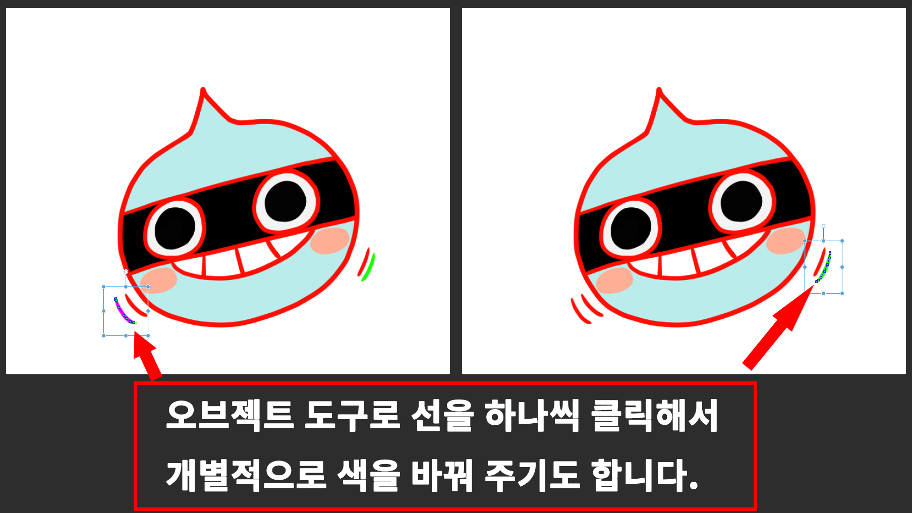 ※ 오브젝트 도구로 선을 하나씩 클릭해서 개별적으로 색을 바꿔 주기도 합니다.