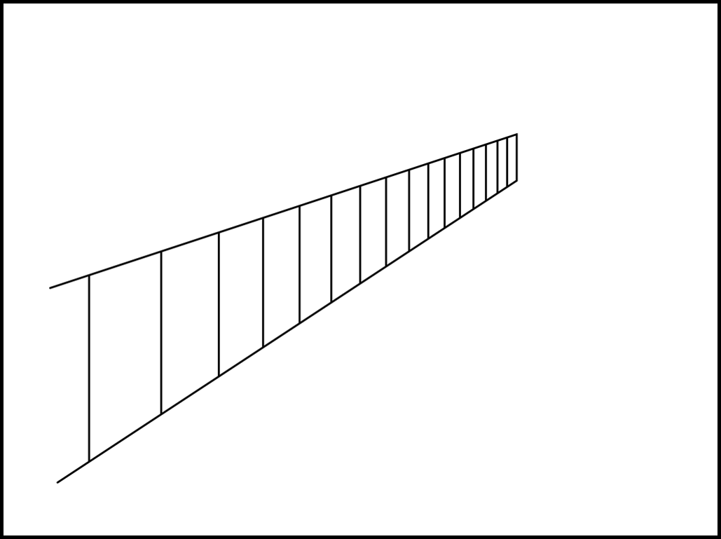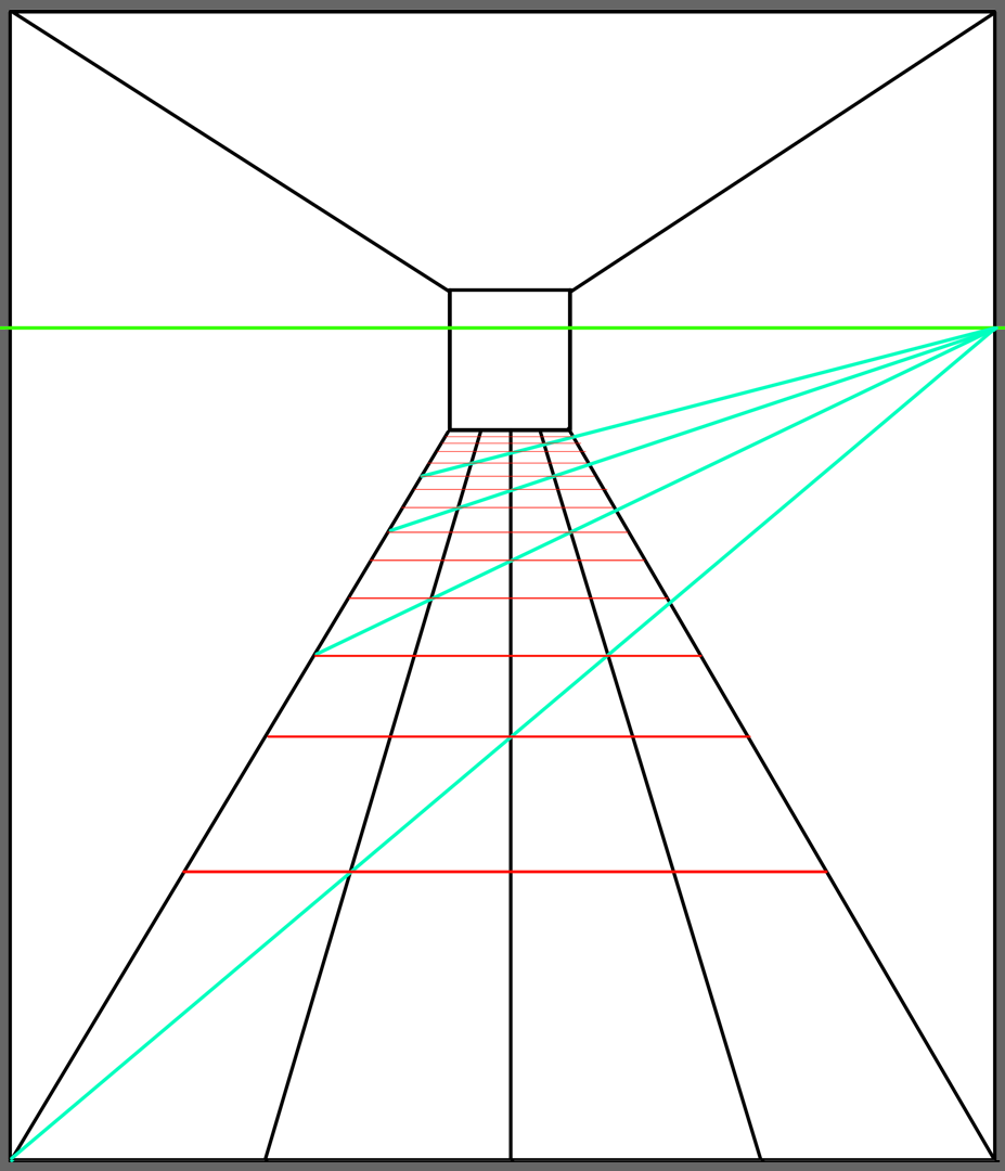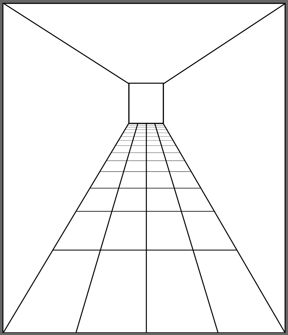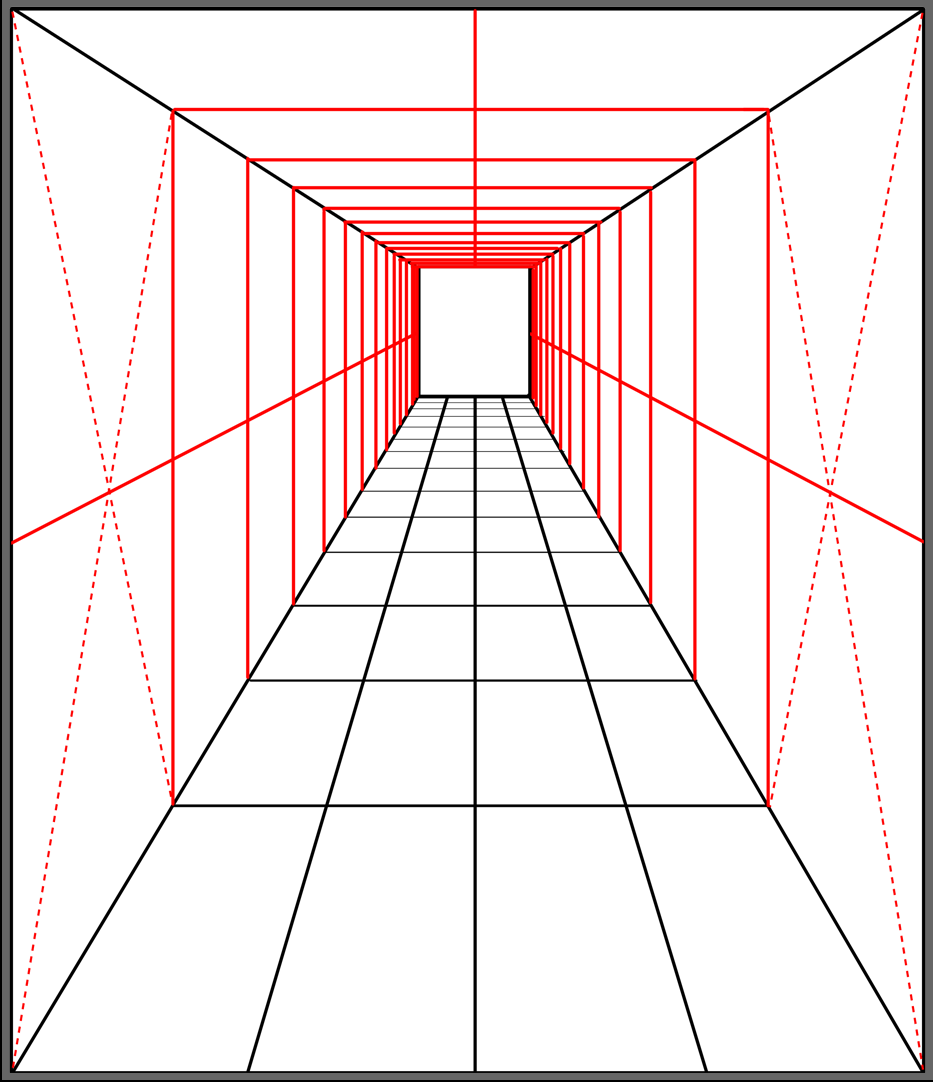 (아래 그림은 1점 투시 복도와 같은 공간을 그리드로 나누어 본 것입니다.)