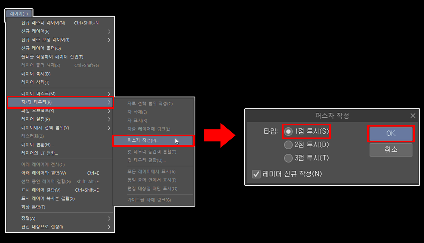 클립 스튜디오: 퍼스 자, 간단한 원근법