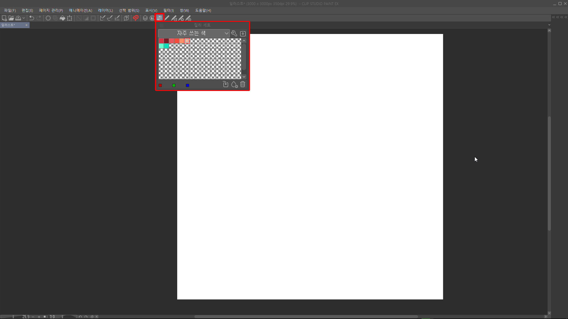 (저는 자주 쓰는 레이어 팔레트, 컬러 서클, 컬러 세트, 도구, 보조 도구, 도구 속성, 브러시 크기 등을 추가해봤습니다.)